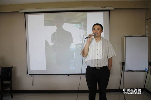 海峡经济科技合作中心副主任萧毅评价参访团表演。(中国台湾网 梁行 摄)