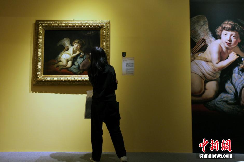 4月16日,台北故宫、列支敦士登王室及联合报系主办的《阿尔卑斯皇冠:列支敦士登秘藏瑰宝展》在台北故宫图书文献大楼开幕。118件瑰宝中包含了文艺复兴三杰之一的拉斐尔及荷兰黄金时期画家林布兰等大师真迹。图为首批观众欣赏名作《吹泡泡的丘比特》。中新社发刘舒凌 摄