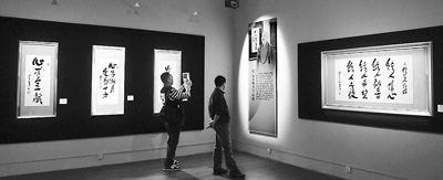 台湾星云大师“一笔字”书法展近日在湖北省博物馆开展。本次书法展共展出星云大师140多件作品,每件作品无论文字多寡,均一笔而成。新华社记者 程 敏摄