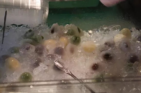 台湾有很多QQ的,糯糯的小吃,看了就觉得非常的清爽,而所谓QQ冰丸~外面是透明的糯米冰皮,夹心有好多味道:绿茶,香芋,芒果...都是我的最爱!