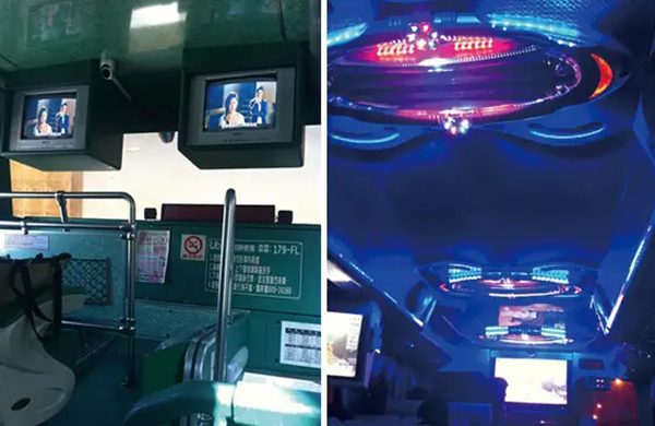你可不要认为只有k歌设备,那你就大错特错了,如果碰到夜晚坐有k歌设备的长途大巴,你就大开眼界了:除了k歌,司机还专门为乘客打开了大巴上的歌厅灯光!一瞬间,歌舞升平、五光十色,突然忘记自己只是在一辆大巴上!当然,司机大哥可永远都是负责认真开车咯,优美的歌声也让司机大哥有提神功效嘛。(文章摘自:台湾达人 公众号)