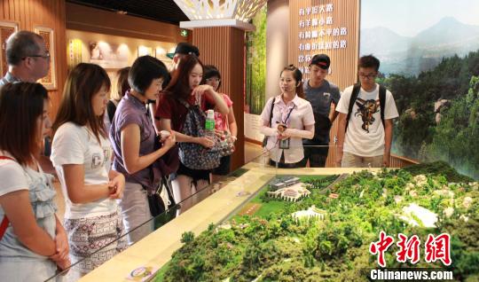 台湾新生参观天福石雕园。 严利人 摄