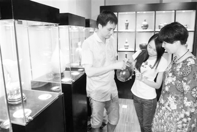 近40件由台湾著名陶艺专家何志隆独创的翡翠青瓷作品,近日在福建省福州市三坊七巷德衣阁展出。刘可耕摄