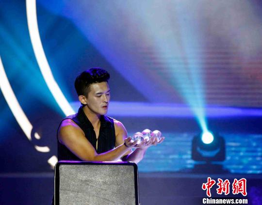 台湾青年的创意水晶球表演《静之美》。 郑伟明 摄