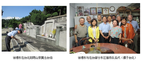 次年夏天,先父在东山中学高中毕业,满腔爱国热情的他毅然参加了由丘念台(甲午战后反割台爱国志士丘逢甲的嫡子)领导的抗日救亡组织—— 东区服务队,在广东东区客家人聚集的惠(州)、潮(州)、梅(州)属25县,通过教唱抗日救亡歌曲、演街头抗日戏、办学校,以及绘画、运动、写作等各种形式的活动,积极从事组训民众的工作,团结教育动员民众抗日救亡。先父在东区服务队结识了丘继英、蔡子培、卓扬、邓子龙、黄炳辉、肖道藩、林启周、魏梵、徐新杰、黎明华、王致远、刘邹炽、张展铨、潘佩卿等一大批客家籍青年爱国知识分子,以及从台湾历尽艰险辗转来到大陆投身抗日阵营的钟浩东/蒋碧玉夫妇、萧道应/黄怡珍夫妇和钟的表弟李南锋等五名台湾爱国青年(台湾著名导演侯孝贤执导的影片《悲情城市》、《好男好女》就是以此故事为原型改编的)。从此,他们成为同甘共苦、志同道合的亲密战友。先父徐森源与先母潘佩卿,也因此在东区服务队由相识到相知相爱,喜结连理,并于1944年秋在东区服务队驻地—— 惠州博罗县罗浮山冲虚观生下了我。接我出生来到人世的不是别人,正是护士出身的蒋碧玉以及丘念台的太太梁筠端,这真吾乃“三生有幸”也!东区服务队有个不成文的约定:凡是在该队出生的孩子,男孩起名必要有个“东”字,女孩起名则要有个“区”,以纪念东区服务队。这便是我的名字“徐博东”的由来(博是因为在博罗县出生)。