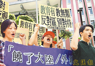 “教育部”次长周灿德失言,外籍新娘“教育部”前抗议。