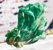“台北故宫”镇馆宝物翠玉白菜姊妹作品小白菜首度出宫展出。 (图片来源:台湾联合报)