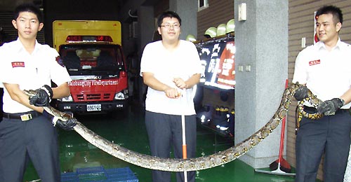 台中市东英消防分队昨天捕获一条蟒蛇。(图:东森新闻)