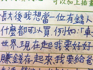 黄姓妇人长子在周记上写着:长大后想当有钱人。