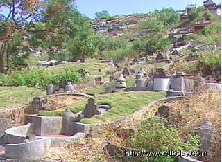 据台湾东森新闻报道,台北县观音山区公墓数以千计的往生者在这里安息,墓碑上头的碑文记载着他们的身份以及来自何方,这横书的两个字,就是往生者的祖籍。