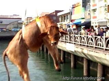 据悉,这头大黄牛原本用船运输,但在准备接驳到岸边卡车上时,绑它的绳索突然断掉,才造成这一起意外落海事件。消防队员表示,这还是第一次接到“吊牛”的任务。