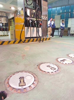 恒加加油站29日加油的车辆已明显减少,图为该加油站地面油槽未铅封的加油口。(台湾《中国时报》图片)