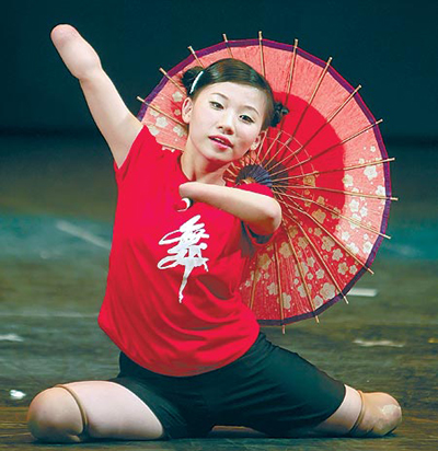 韦齐小时候就学跳舞、学弹琴,直到她因病被迫截肢,这两件事变成“梦想”,但昨晚她还是实现了这个梦想。她用截肢后的双腿踩着滑板出场,引得全场热烈掌声;再随着《虹彩妹妹》的节奏摆动身躯、转动纸伞。她就像没有翅膀的天使,在舞台上慢慢飘舞。