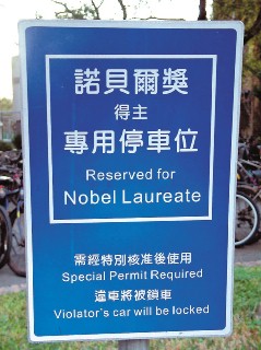 位于台大小椰林大道旁的诺贝尔奖专用停车位。 来源:台湾《联合晚报》