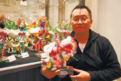 他从8岁就开始学习纸艺,一度还去参加八家将的演出,越演越有心得,且更能揣摩八家将的造型跟神韵,就以细腻的观察力跟工法,将八家将融入到纸艺里头。