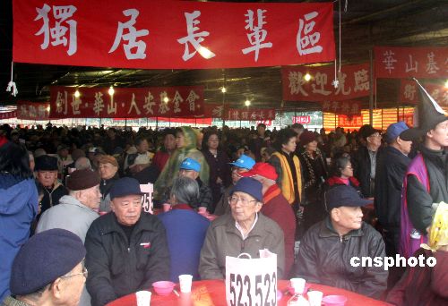 年终岁末,全台湾正在流行尾牙宴。二日中午,今年最大的一场尾牙宴在台北松山烟厂席开七百桌。七千多流浪街友及独居老人共同围炉,迎接农历新年。 中新社发 徐长安 摄