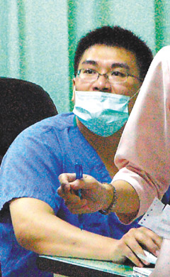 陈水扁女婿赵建铭去年三月离开台大医院后,转至台南县新楼医院麻豆分院看诊,近日传出医疗纠纷,图为他平日看诊情形。资料照片/谢玲玉摄