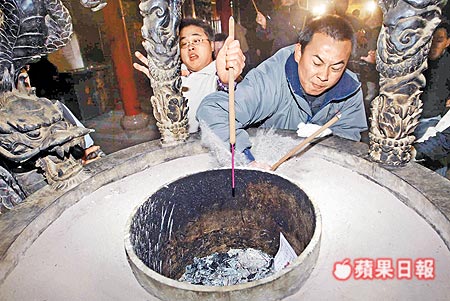 台中市南天宫涌进500人抢头香。(以上图片来源:苹果日报)