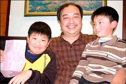 杨织骏(左)与六岁弟弟魏业宬(右)连续两天到原地等候失主却等不到人,只好由父亲杨志强(中)将钱送交辖区派出所处理。