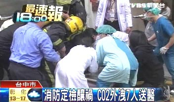 报道称,台中市消防局表示,这起二氧化碳严重外泄的安全意外,是发生在“中国医药大学”附设医院,6名隶属“尚利公司”的消防保全人员,原本要前往医院的停车塔,进行每半年一次的安全检测时,可能因误触自动消防灭火系统,造成大量二氧化碳外泄,造成6名人员与随行的1名院方警卫,都因严重缺氧而昏迷,获报后立即派员抢救送进医院急诊室进行抢救。