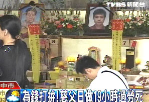 中国台湾网4月8日消息 据台湾东森新闻报道,为了给家人更好的生活,帮小儿子办个风光的婚礼,台中洪姓男子每天工作19小时,最后竟然过劳死。