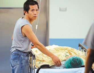 男童父亲在医院看护受伤的儿子。(图片来源:台湾《联合报》)