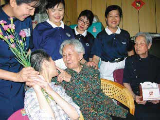 中新网5月9日电 台湾花莲县84岁老奶奶郑舜娇照顾重度智障兼癫痫的养女婉珠57年,感动了长年关怀的慈济志工,8日协助婉珠致赠玫瑰花与代念感恩词,郑舜娇不禁潸然下。