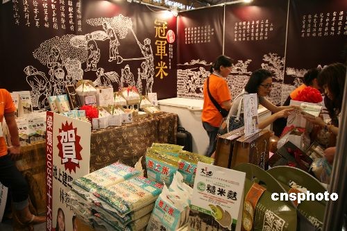 二00八年优质台湾米博览会十月十日在台北举行,几十家绩优台湾米厂商和农会展售上百个大米产品,并在这里“秀”养生、“秀”包装、“秀”吃法,令人眼花缭乱。 中新社发 杨旭 摄