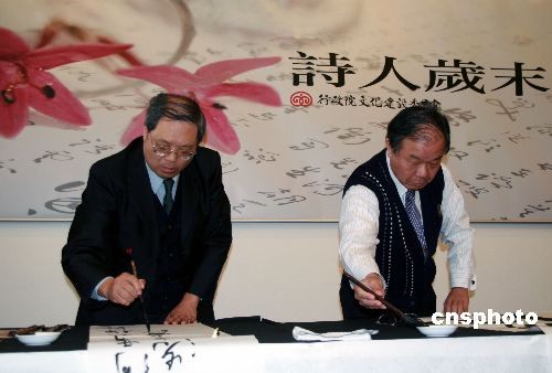 台湾“文建会”主委黄碧端说,这么多著名的诗人围炉叙旧,是台湾文化界的一件盛事。此次聚会,是希望留下诗人们的手稿真迹,以后将这些墨宝制作成陶器、石器等文化产品,发展台湾的文化创意产业。