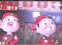 公仔创意,其实是庙方跟嘉义市府合作,把要送表演外宾的财神公仔,多制作300套,留给有缘的信徒,可爱的造型公仔也让庙方信徒倍增,看来不景气,民众都想把财神爷请回家,希望能财源广进。