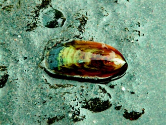 这群辅导团教师,为配合台教育主管部门推动海洋教育政策,每到假日就上山下海采集标本,作为教学教材。最近到福宝湿地采集贝类,发现一枚很像孔雀贝又像牡蛎的奇怪贝壳。