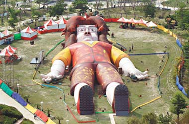 中新网4月2日电 据台湾联合报报道,台中市儿童艺术节今晚登场,一剧团在公园打造长近60米的“格列佛人体艺术探索馆”,市民站在巨大的“格列佛”身旁,顿时变成“小人”,好像进入童话故事情境,从格列佛的脚底进入,能认识人体器官。