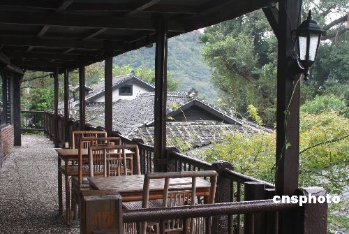 “禅园”内原看守人员的房屋现辟为茶坊。细雨霏霏或雨后放晴之际,坐在茶坊游廊品茗颇为享受。 中新社发 耿军 摄