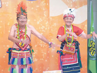 结褵70年的邓有才与吴藜英,昨天在台“卫生署”开心地跳台湾少数民族舞蹈,这对合计过180岁的夫妇获选绩优志工,他们说,这是最棒的情人节礼物。