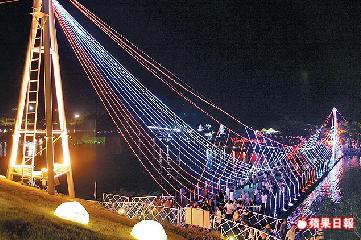 为庆祝七夕情人节,主办单位特地在公园搭起由浮筒建造,长65公尺、宽6公尺,桥梁缆绳以七彩LED管灯布置,可容纳150对情侣同时度过的“鹊桥”。