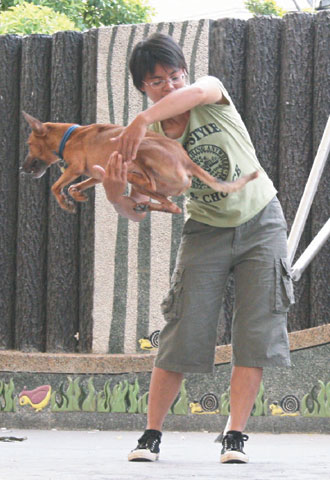 中新网9月7日电 据台湾《联合报》报道,台湾动物防疫所6日在中坜市中正公园举办2009宠物节,舞台上有败犬女王走秀、宠物变装秀,有黄色土狗上台秀才艺,表演中枪、连续翻滚、跳圈圈,博得热烈掌声。