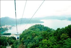 从日月潭缆车高空俯瞰日月潭景色迷人