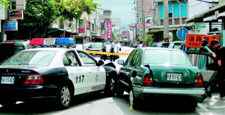 台湾花莲警方围捕强盗案嫌犯,开枪击中歹徒座车,并逮捕嫌犯。(图片来源:台湾《联合报》)