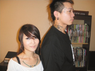 “我在颈部刺项链,表示不需再买项链”,郑淑芬受丈夫影响,去年生下儿子后,觉得不可再像年轻时爱玩了,应该节俭,在颈部刺了项链,图案三个星星代表一家三口;右耳下也刺一个星星,代表儿子。