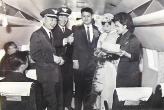 当时在华航花莲站当业务的高家成即将结婚,与女友当然成了“首度空中婚礼”的最佳男女主角。机上婚礼由机长任歌樵当证婚人,两位华航第一代空少叶鹏及空姐曹开武、涂咪咪分别担任男、女傧相。