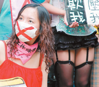 台湾日日春关怀协会等社运团体多次走上街头,要求废除罚娼条款。台湾《联合报》资料照片