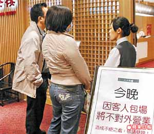 餐厅临时贴出“因客人包场、将不对外营业”的公告。 来源:台湾《苹果日报》