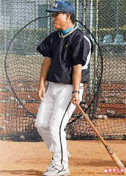 陈世龙上周四晚上体罚四名期中考不及格的球员,用球棒打他们的屁股。 来源:台湾《苹果日报》