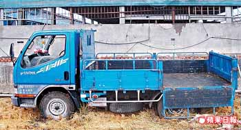 偷猪车动弹不得,窃贼将车斗栅栏放下弃车逃离。 来源:台湾《苹果日报》