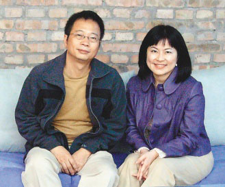 陈绫蕙(右)受不了钱庄逼债,烧炭身亡,图为陈绫蕙生前和画家丈夫张志成合照。图片来源:台湾《联合报》