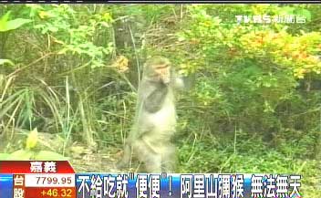 阿里山的弥猴为了吃树上的果子,不断跳跃,作势要跳上围墙,只是猴子这想吃东西的模样,仔细看,它还双手合十,好像是拜托的模样,之后手指比出来,原来它要的是香蕉。民众王先生:“第一次遇到猴子会站起来拜托,还指说要什么东西,很聪明。”