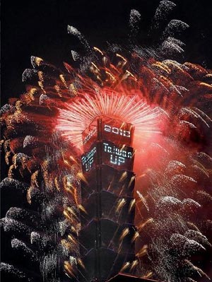 台北市府广场前更有76万民众,在午夜时分齐声倒数“5、4、3、2、1”,台北101烟火随即在众人惊呼中窜升夜空。