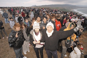 2010年第一天,屏东垦丁龙盘公园聚集上万民众前来迎接第一道曙光,大家冒着寒风殷殷期待,但未能如愿,不过大家仍很兴奋。来源:台湾《联合晚报》