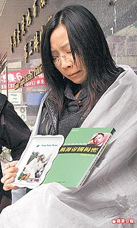 《壹周刊》前记者臧家宜(图)因恐吓台湾首富郭台铭遭判刑,她昨披麻带孝到台北地检署要求入监但被劝回。来源:台湾《苹果日报》