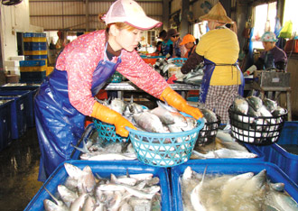 嘉义沿海这两天冻伤的虱目鱼数量庞大,渔民纷将虱目鱼卖给加工业者,厂内可见大批等待加工虱目鱼。(图片来源:台湾《联合报》)